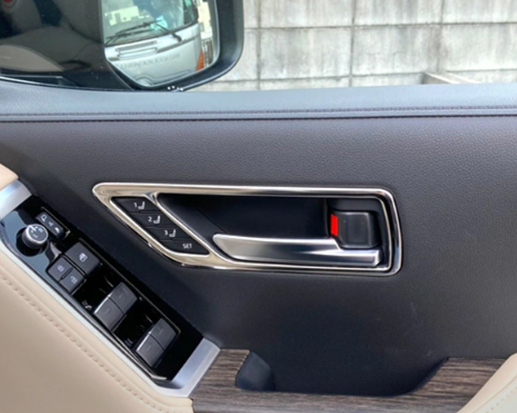 SUS304 Stainless Steel Door Bezel Handle Garnish Interior Trim Silver Mirror Finish 4P Set Fits Toyota Land Cruiser LC300