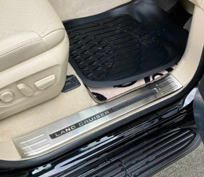 SUS304 Stainless Steel Inside Door Sill Scuff Plate Set Hairline Finish Silver 4pcs Fits Toyota Land Cruiser 300